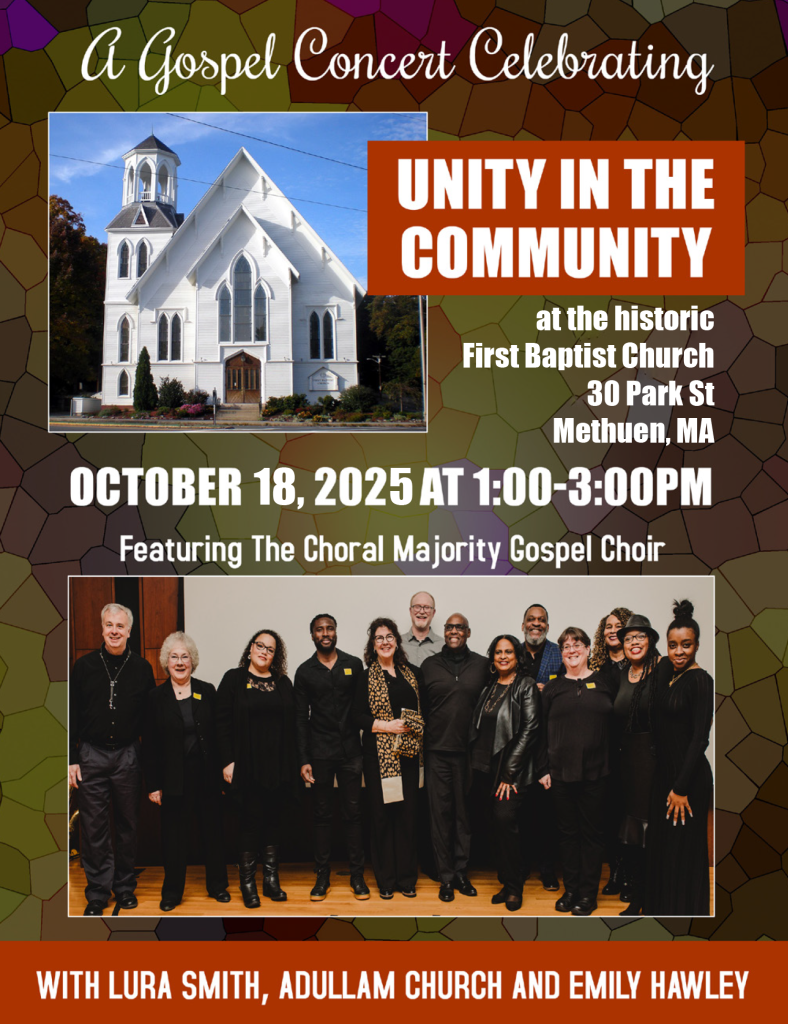 Description: Members of The Choral Majority Gospel Choir will participate in the annual MLK Day celebration with the Andover Baptist Church Unity Choir.